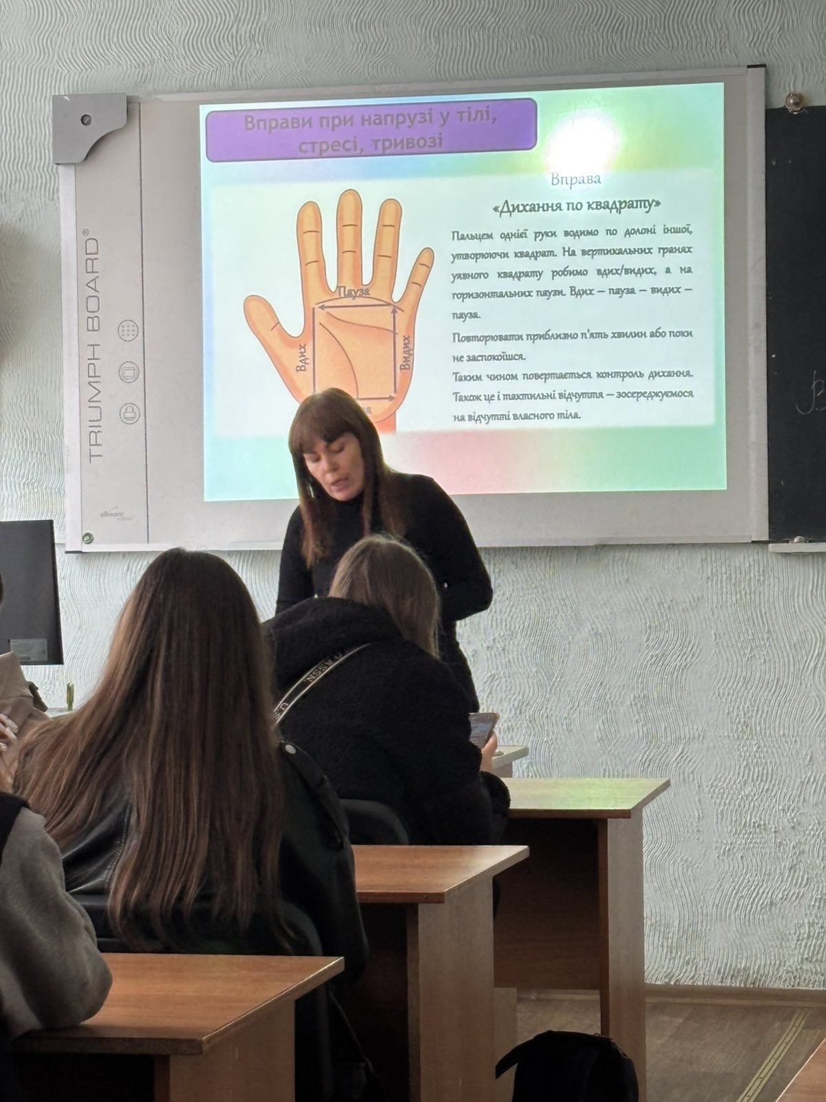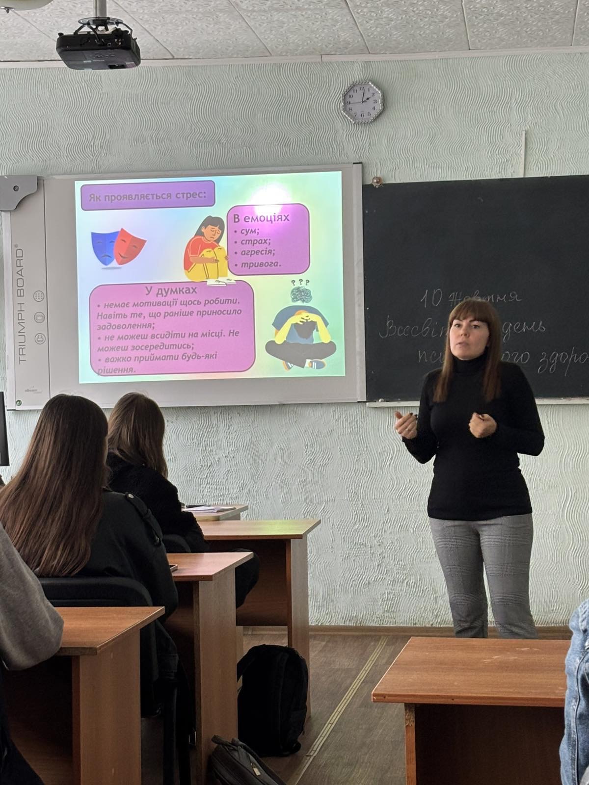 09.10.25 до Всесвітнього дня психічного здоровʼя у нашому коледжі був проведений профілактично-просвітницький захід практичним психологом Неділько Ольгою «Ментальне здоровʼя. Як допомогти собі». Психолог розповіла здобувачам освіти про важливість збереження свого психічного здоровʼя від стресу і як долати стрес через прості вправи та дотримання принципів здорового способу життя, що зміцнює нашу нервову систему і допомагає бути стійкими до бурхливих змін у нашому житті.