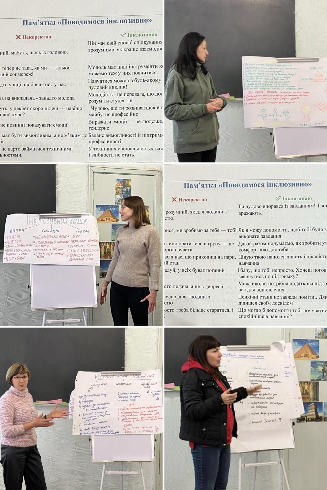 Проєкт «Організація інклюзивного середовища в коледжі» спрямований на створення оптимальних умов для навчання та розвитку студентів з різними освітніми потребами в коледжі. Головні етапи проекту включають в себе адаптацію освітнього процесу, навчальних матеріалів і ресурсів для інклюзивного навчання, підготовку педагогічних кадрів та залучення фахівців, розвиток інклюзивної культури в коледжі, та створення механізмів для постійного моніторингу та корекції інклюзивного процесу. Проєкт прагне створити середовище, де кожен студент має можливість розвивати свій потенціал та досягати навчальних цілей, незалежно від їхніх освітніх потреб та можливостей.