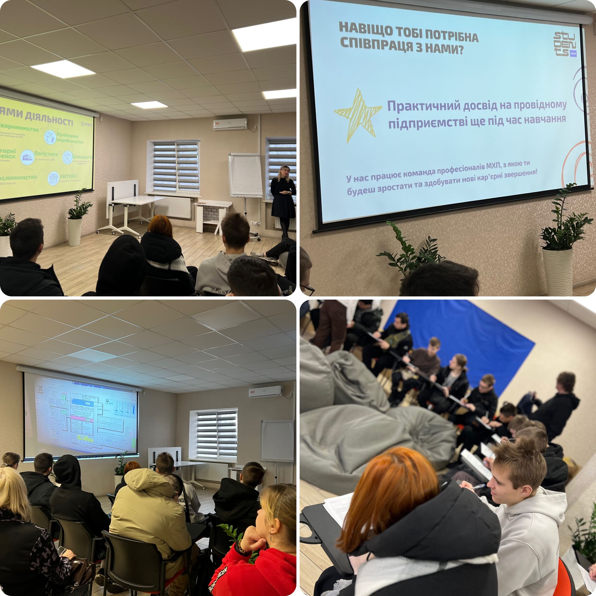 28 листопада здобувачі освіти нашого коледжу здійснили пізнавальну екскурсію на підприємство МХП, що є лідером у сфері харчових та агротехнологій. Групу зустріла провідна фахівчиня компанії Ольга Шевченко, яка провела інструктаж з техніки безпеки, розповіла про діяльність підприємства, його основні напрями роботи, які цікаві для всіх здобувачів різних спеціальностей, про можливість суміщення роботи та навчання шляхом дуальної чи індивідуальної форм навчання та з'ясувала переваги працевлаштування.