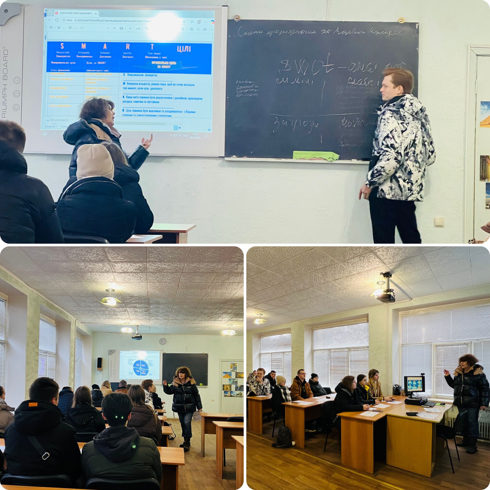 На минулому тижні відбулась друга зустрічі з кар'єрної консультації з випускними групами коледжу, яка була орієнтована на практичне виконання і безпосередньо стосувалася розробки кар'єрного плану. Своїми мріями щодо професійного шляху та довгостроковими SMART цілями поділився ІВАН КАЛАБКІН – студент 4- курсу, що набуває спеціальності «Будівництво та цивільна інженерія».
