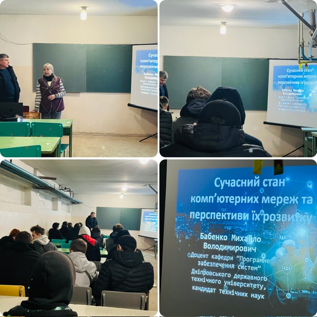 17.03.2026 для здобувачів освіти 2-4 курсів спеціальностей 121 ( F2) Інженерія програмного забезпечення та 113 Прикладна математика відбулася цікава та пізнавальна гостьова лекція з дисципліни «Організація комп’ютерних мереж», яку провів викладач Дніпровського державного технічного університету доцент кафедри "Програмного забезпечення систем" доцент, кандидат технічних наук Бабенко Михайло Володимирович.