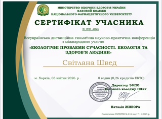 3 квітня у Харкові пройшла Всеукраїнська екологічна науково-практична конференція з міжнародною участю «Екологічні проблеми сучасності. Екологія та здоров’я людини». Організатором заходу виступив Фаховий коледж Національного фармацевтичного університету. Основна мета конференції — створення майданчика для обміну знаннями, ідеями та досвідом у галузі охорони навколишнього середовища. Це форум, де науковці, екологи, активісти та здобувачі освіти обговорили сучасні виклики екології, природоохоронної діяльності та здоров’я людини, а також виробили спільні стратегії для їх вирішення. Захід сприяв налагодженню співпраці між учасниками, популяризації інноваційних технологій та стимулюванню обговорення екологічних проблем у суспільстві.