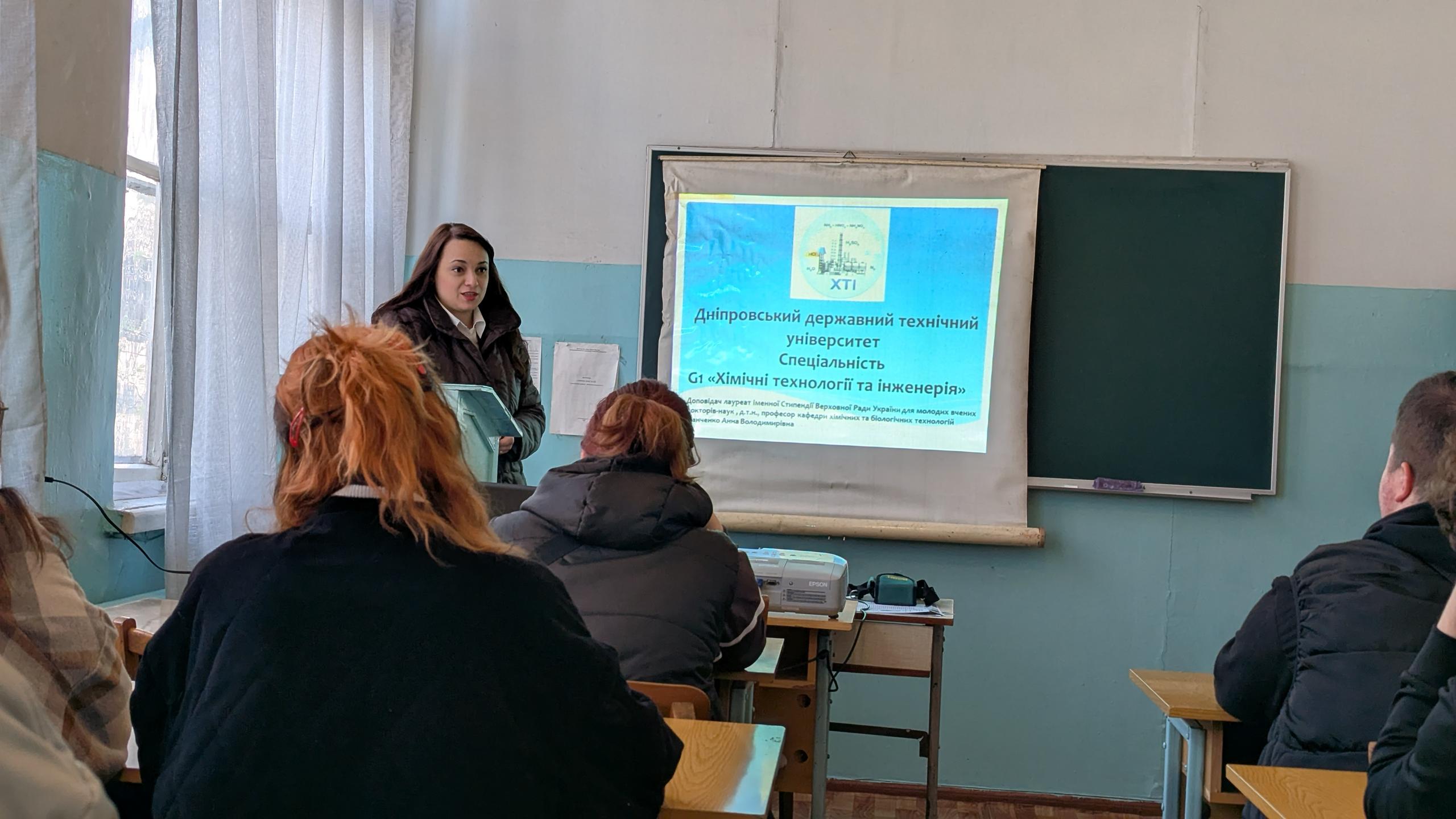 У рамках візіту Анна Іванченко — доктор технічних наук, професор кафедри хімічних та біологічних технологій — провела змістовну профорієнтаційну зустріч. Учасники отримали актуальну інформацію щодо освітніх програм, умов вступу та перспектив працевлаштування.