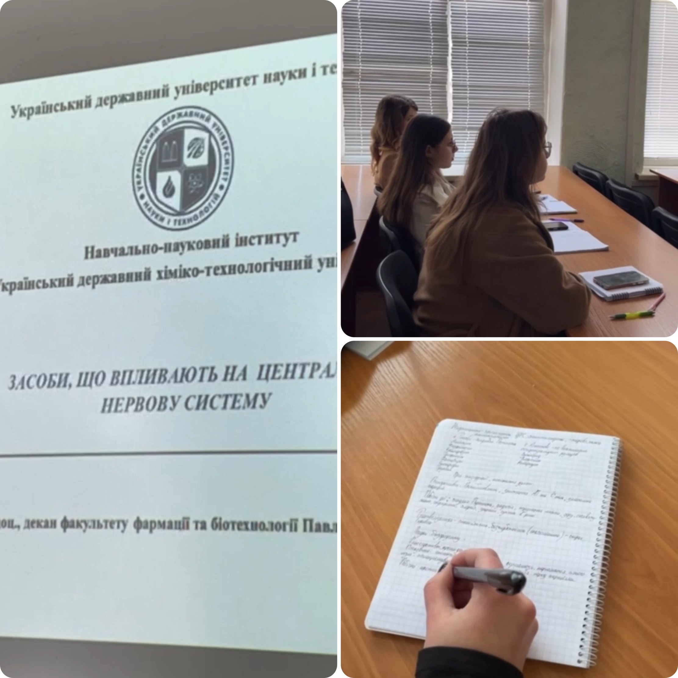 Цикл відкритих лекцій для студентів спеціальності Фармація, промислова фармація триває. 17 квітня 2026 року декан факультету фармації та біотехнології, к.х.н., доцент Павло Задорожній провів чергове заняття, присвячене комплексній темі: «Сучасні засоби впливу на центральну нервову систему».