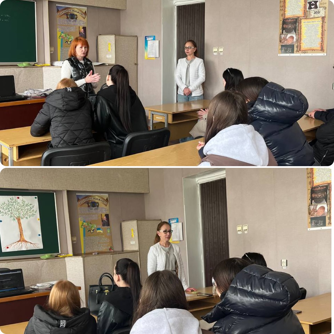 Завершили захід вправи «Кокон безпеки», «Відродження лісу», які були запропоновані студентам практичним психологом Юлією Бурловою. Адже, коли ми говоримо про події минулого, важливо «повернути» студентів у теперішній час, щоб вони не залишалися в пригніченому стані.