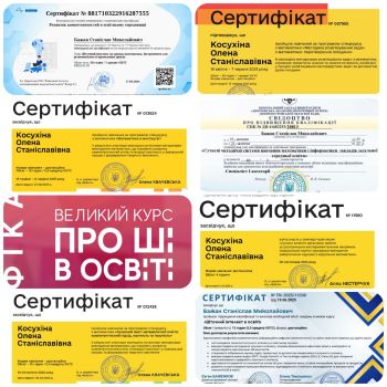 Вчена ступінь: Доктор філософії з прикладної математики Педагогічна атестаційна категорія: І категорія Освіта: Дніпровський державний технічний університет, 2018р. Кваліфікація за дипломом: Прикладна математика, магістр з прикладної математики